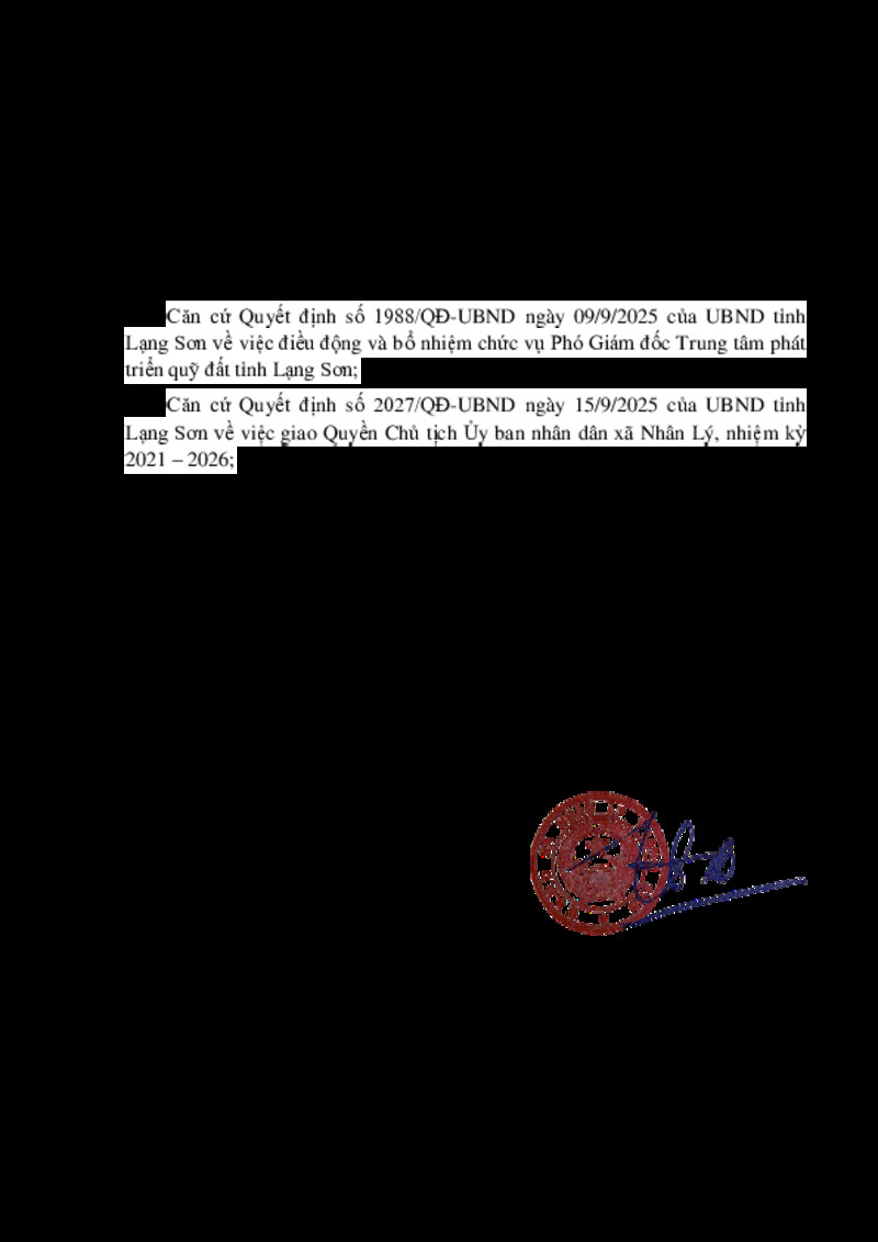 Bổ sung lịch trực ngày nghỉ của Lãnh đạo UBND xã Nhân Lý Tháng 9/2025