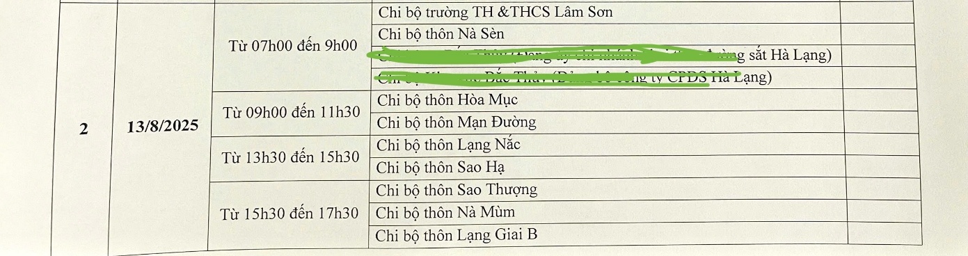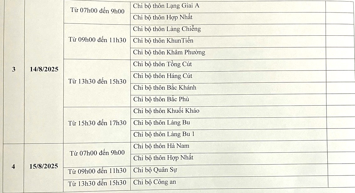 Lịch cấp đổi thẻ đảng viên đối với các chi bộ còn lại như sau: