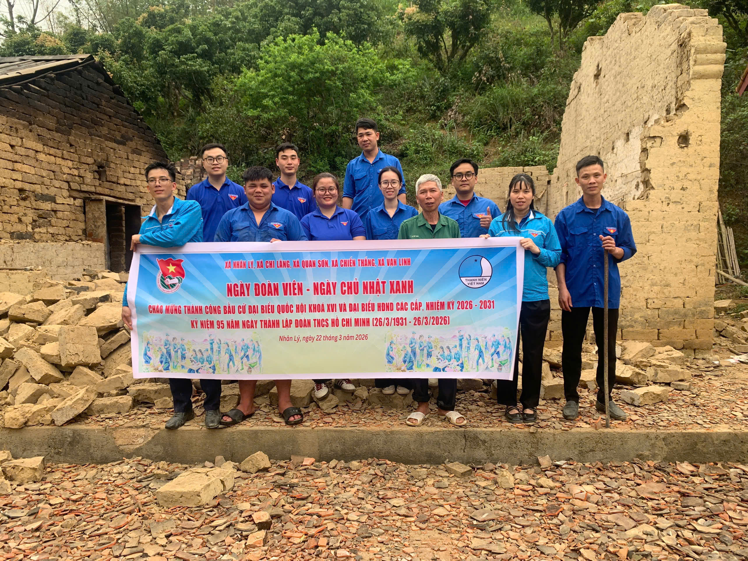 🇻🇳🇻🇳 Ngày 22/3/2026, Cụm các xã Chi Lăng, Vạn Linh, Chiến Thắng, Quan Sơn, Nhân Lý tổ chức hỗ trợ xoá nhà tạm, nhà dột nát hộ gia đình Vi Văn Thèn, thôn Hoà Mục, xã Nhân Lý. Hoạt động thu hút 15 ĐVTN tham gia hỗ trợ.