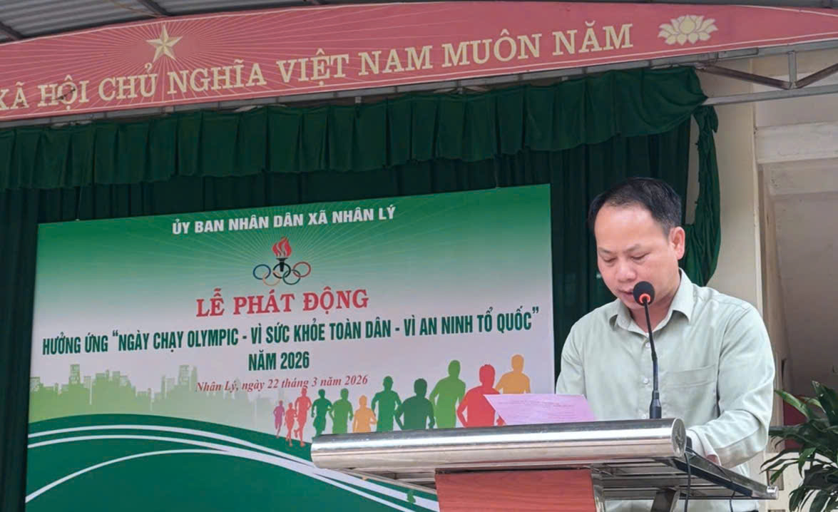 Sáng ngày 22/3/2026, tại sân Trường THCS Mai Sao, UBND xã Nhân Lý tổ chức “Ngày chạy Olympic – Vì sức khỏe toàn dân – Vì An ninh Tổ quốc” theo Kế hoạch số 64/KH-UBND ngày 18/3/2026.