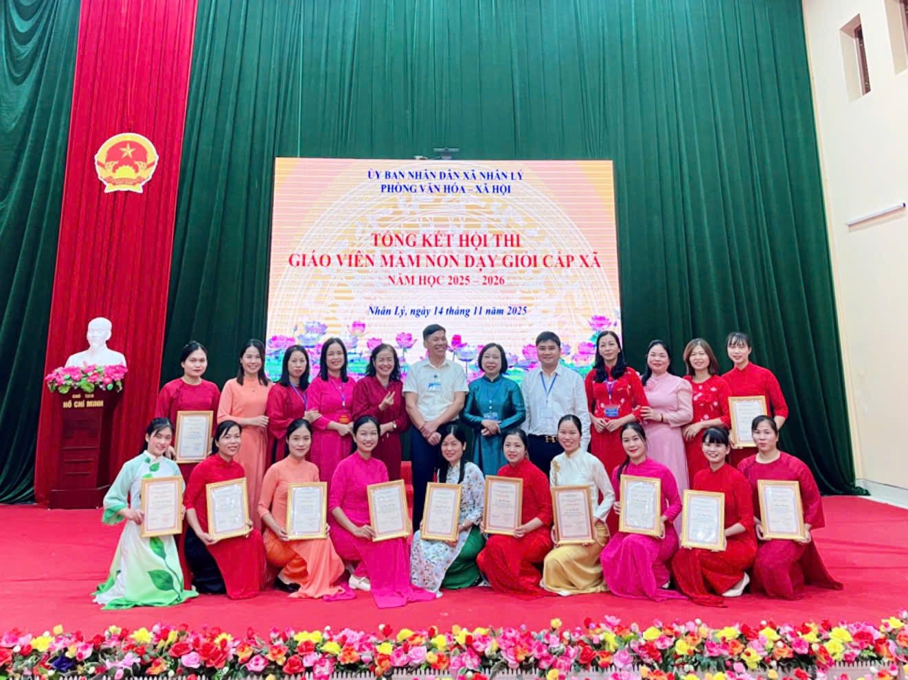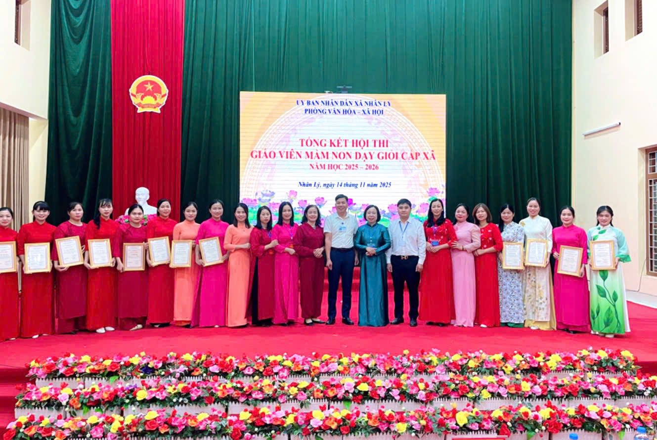 Ngày 14/11/2025, tại Hội trường Nhà văn hóa xã Nhân Lý. Ủy ban nhân dân xã Nhân Lý tổ chức tổng kết hội thi giáo viên Mầm non dạy giỏi cấp xã năm học 2025 - 2026.