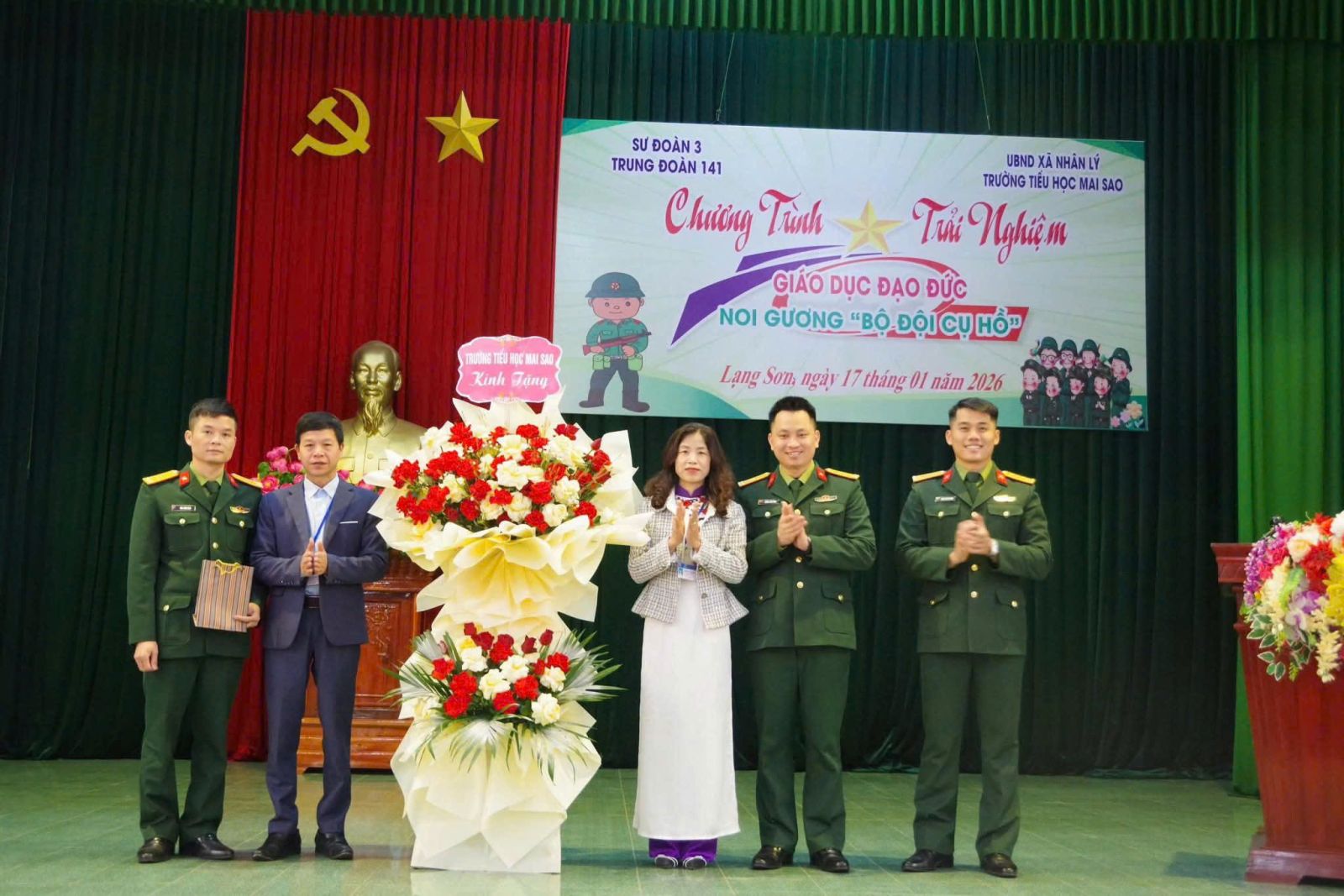 , Trường Tiểu học Mai Sao, xã Nhân Lý đã phối hợp tổ chức chương trình tham quan, trải nghiệm với chủ đề “Giáo dục đạo đức – Noi gương Bộ đội Cụ Hồ” tại Trung đoàn 141 – Đoàn Hoài Ân Anh hùng, thuộc Sư đoàn 3.