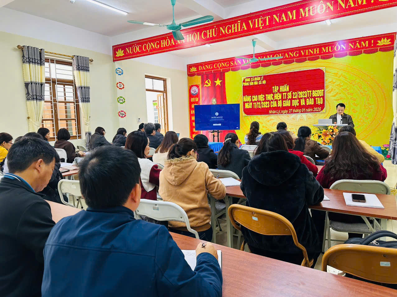 Chiều ngày 27/01/2026, tại Trường Tiểu học xã Nhân Lý, UBND xã Nhân Lý phối hợp với Phòng Văn hóa – Xã hội tổ chức lớp tập huấn, bồi dưỡng nâng cao việc triển khai thực hiện Thông tư số 23/2023/TT-BGDĐT của Bộ Giáo dục và Đào tạo về đánh giá học sinh tiểu học.