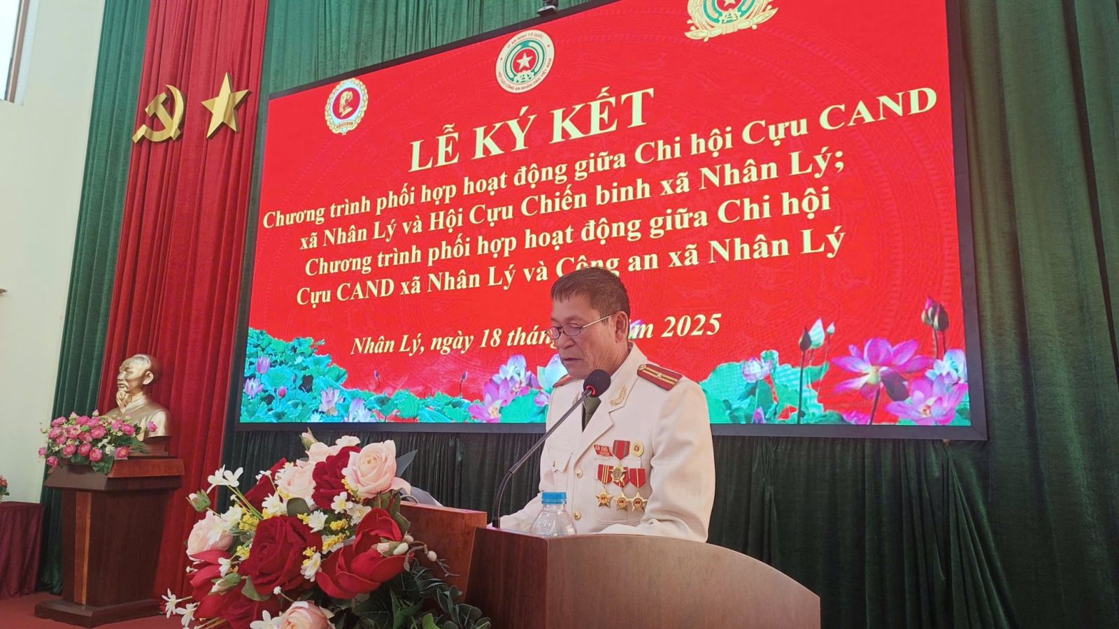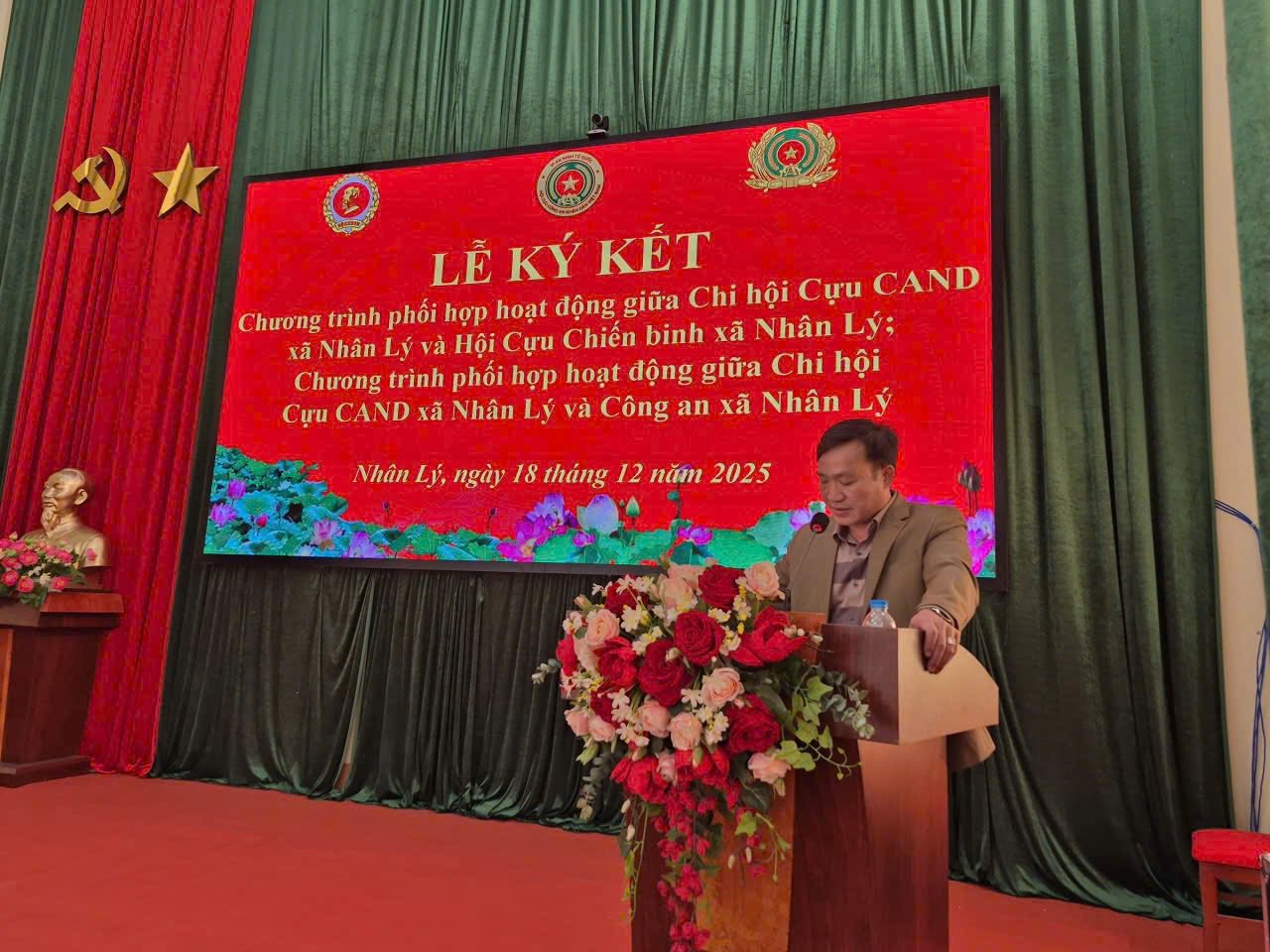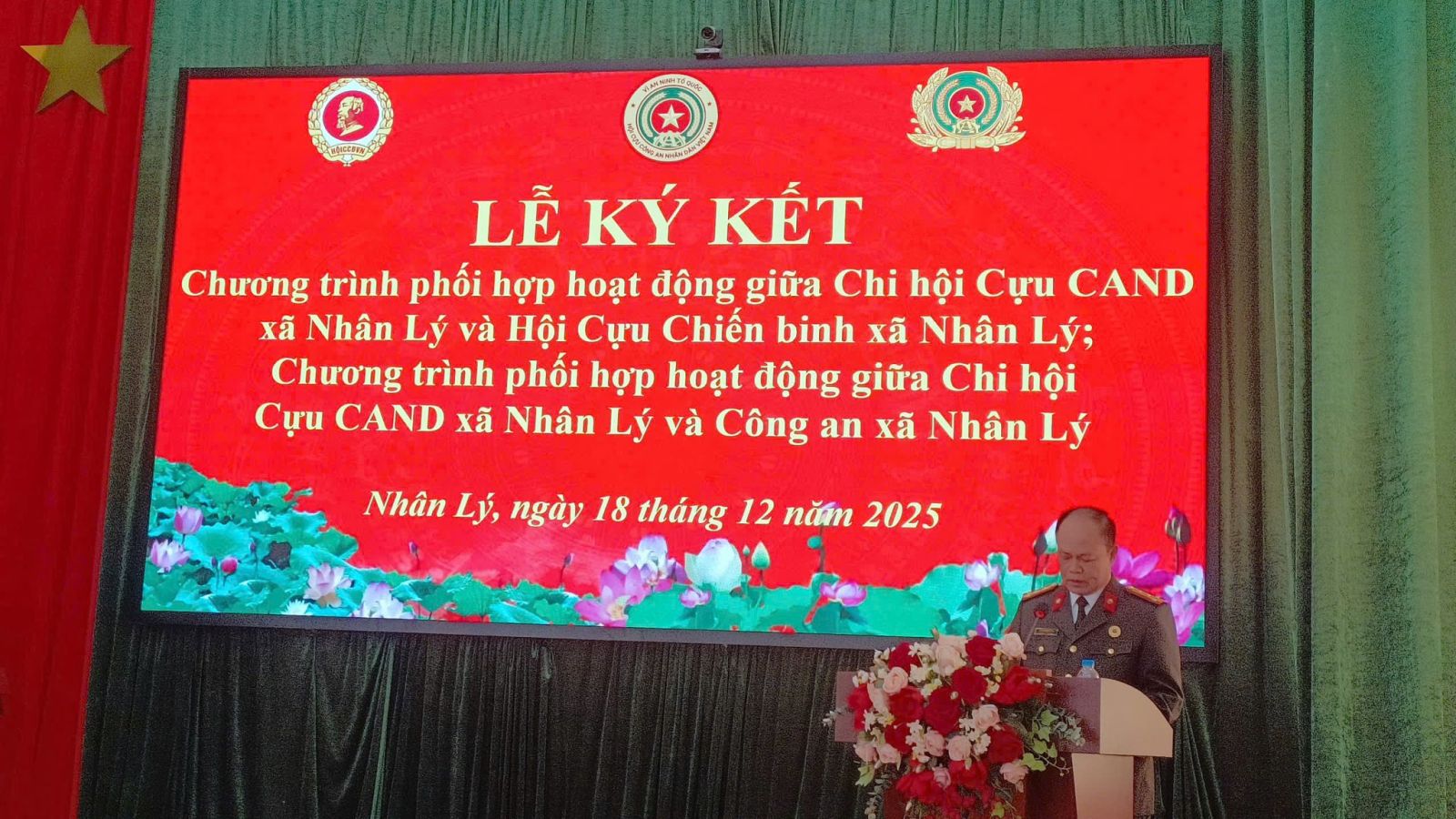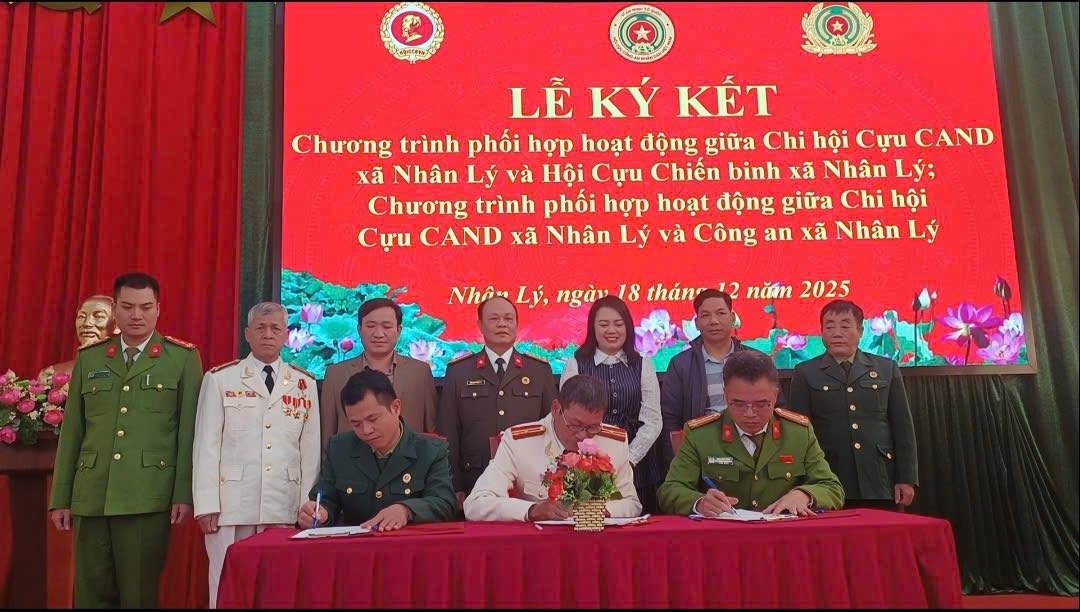 Ngày 18/12/2025, Xã Nhân Lý tổ chức Lễ ký kết chương trình phối hợp hoạt động giữa Chi hội Cựu CAND xã với Hội Cựu Chiến bình xã; ký kết chương trình phối hợp hoạt động giữa Chi hội Cựu CAND xã với Công an xã.