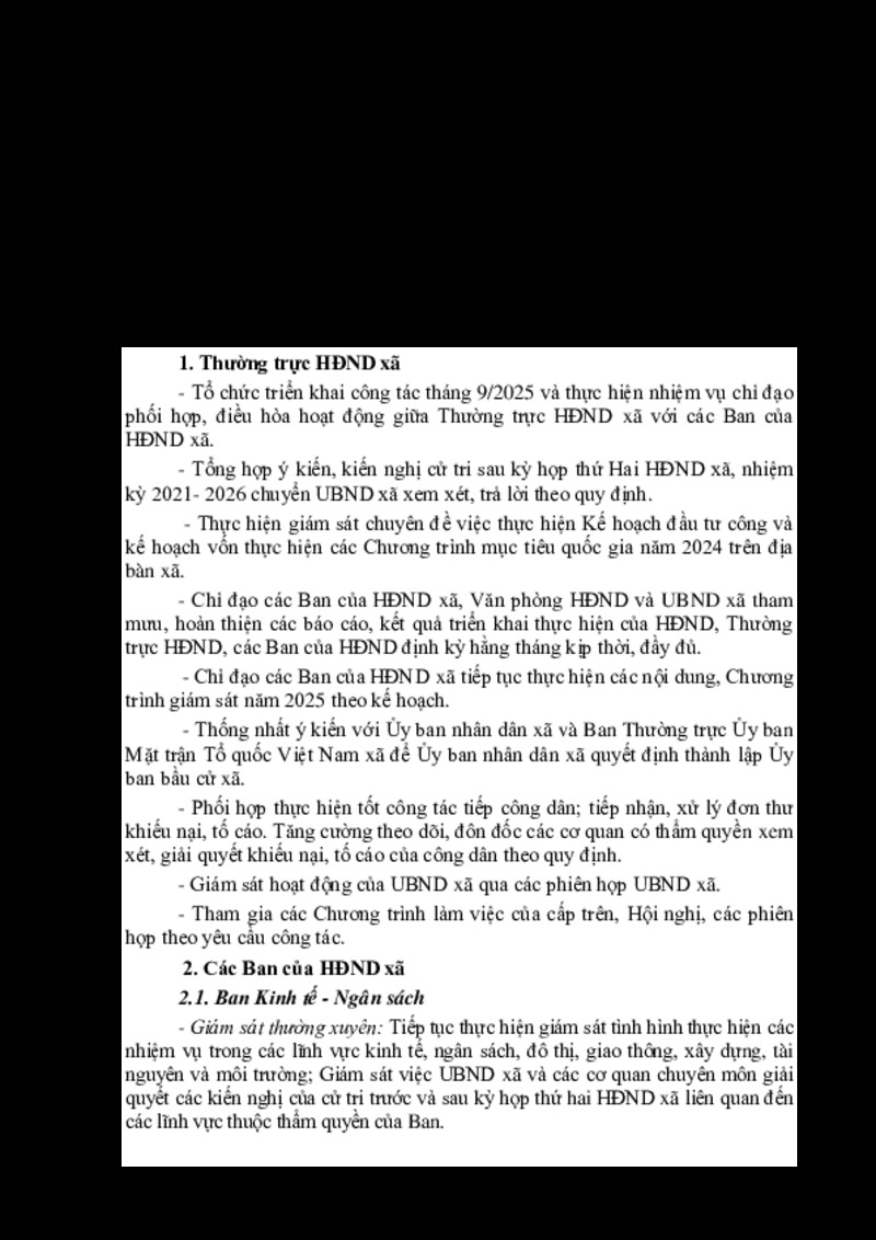 | Tiêu đề văn bản | Chương trình Công tác của Hội đồng nhân dân xã tháng 9 năm 2025 | ||